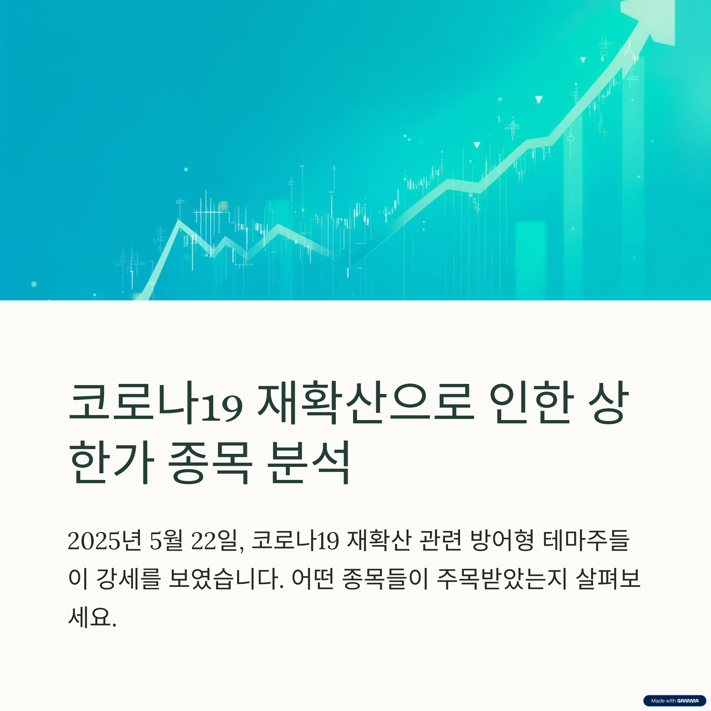 2025년 5월 22일, 국내 증시에서 상한가를 기록한 주요 종목들은 코로나19 재확산과 관련된 방어형 테마주들이었습니다. 이러한 종목들은 단기적인 이슈에 반응하여 급등세를 보였으며, 투자자들의 관심을 집중시켰습니다.